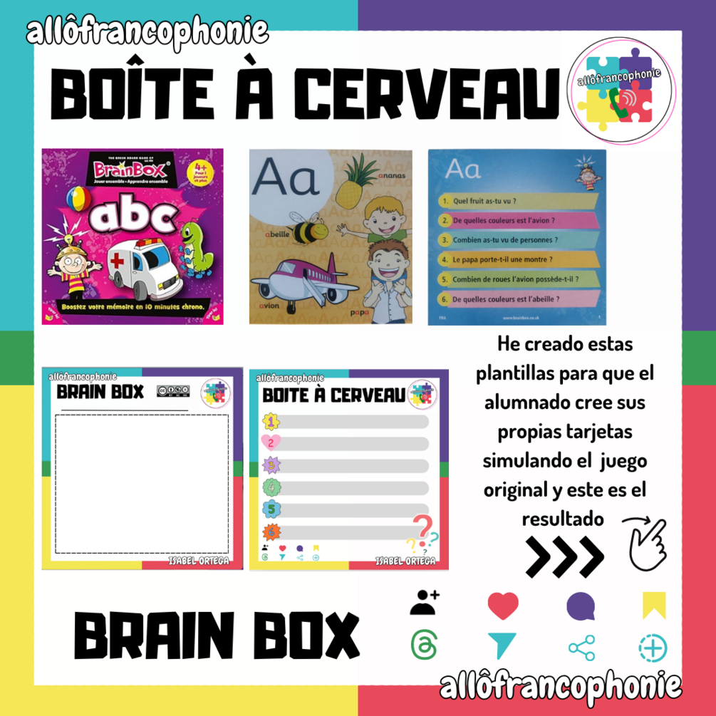 Plantillas inspiradas en el juego BrainBox, para que los estudiantes puedan diseñar sus propias tarjetas educativas.