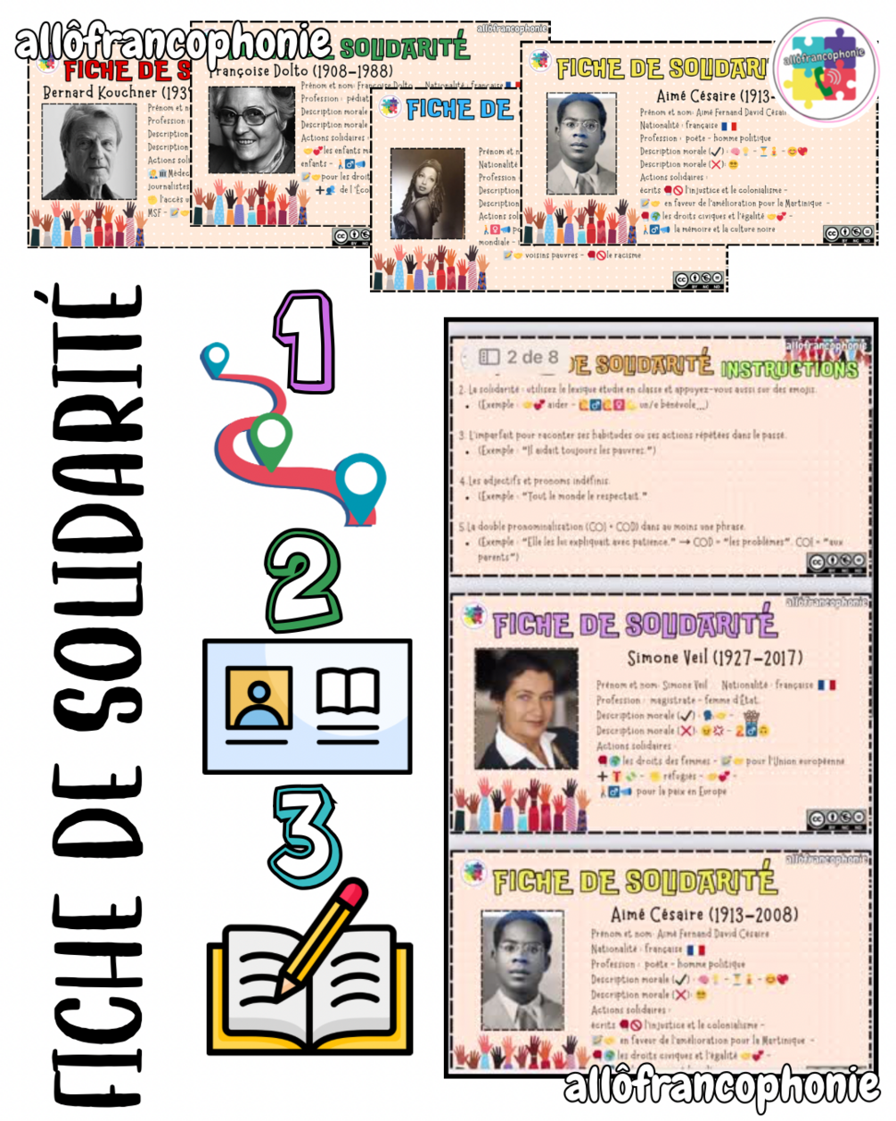 Aujourd’hui, je vous partage une activité que j’ai conçue pour guider mes élèves pas à pas dans la rédaction d’un petit texte sur une personnalité francophone et son engagement solidaire 🤝
